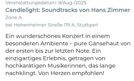 Candlelight-Konzerte Stuttgart, Wiesbaden, Offenbach, Mainz